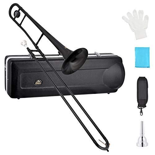 EASTROCK Bb Tenor Slide Trombone Brass Musical Instrument with Hard Case,Mouthpiece,Gloves,Cleaning Cloth for Beginners Standard Bell(7.87"/200 mm),Black